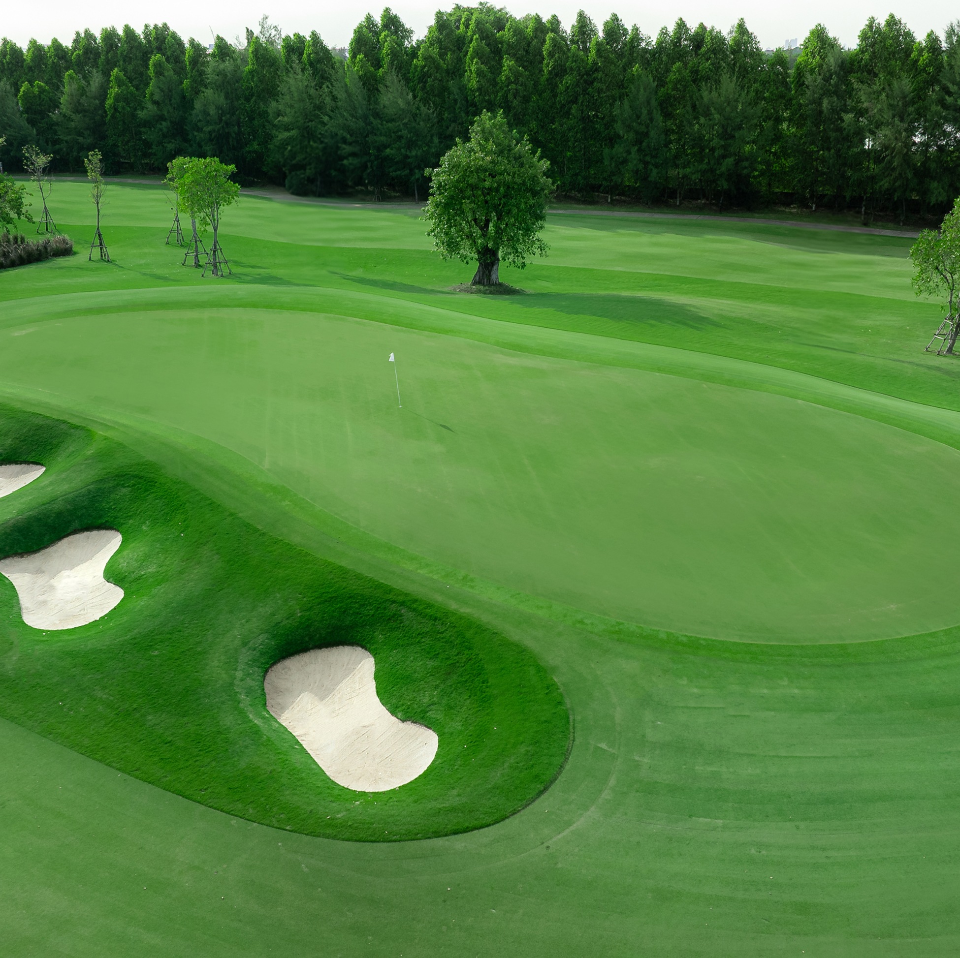 공항과 시내에서 접근성이 좋으며, 잘 관리된 페어웨이와 언듈레이션이 있는 그린, 연못과 벙커가 특징