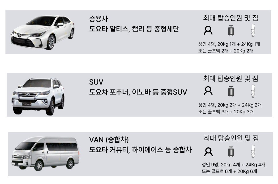 모든 요금이 포함되어 있으며 추가 요금(통행료, 주차료, 주유비)이 없습니다.